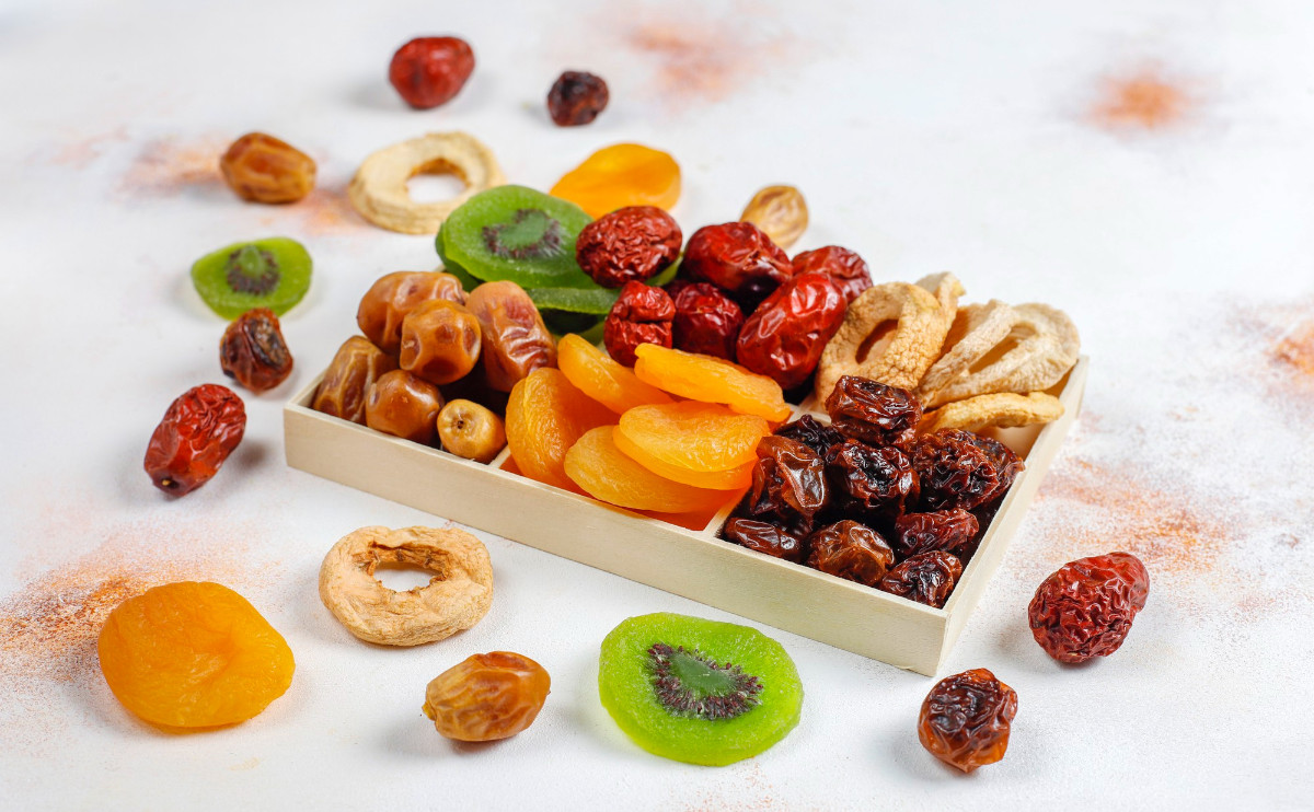 1. Сухі ягоди: Це включає родзинки (сухі виноград), журавлину, чорницю, а також ягоди годжі. Вони багаті на антиоксиданти і часто використовуються в десертах та салатах.